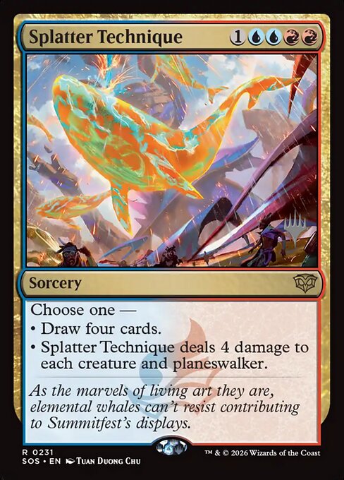 • Splatter Technique deals 4 damage to each creature and planeswalker.